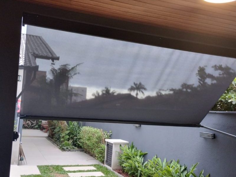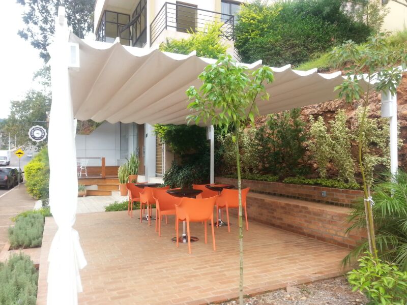 Cobertura retrátil com deslizamento horizontal e possibilidade de fechamento perimetral.