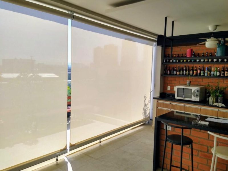 Sistema simples e prático, ideal para varandas e parapeitos. Permite efeito cortina quando instalado verticalmente.